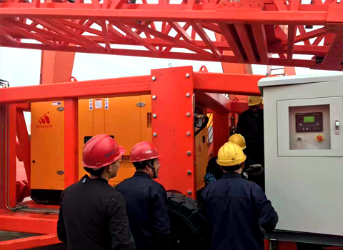 某公司與我司合作長達10年之久,此次30KW柴油發電機組搭配靜音箱和移動拖車經過車間工人
